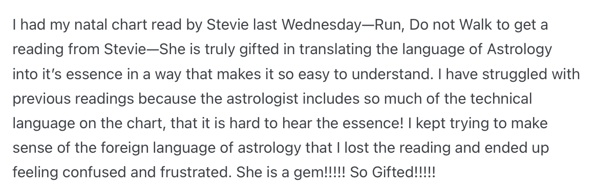 Whether you're navigating a big decision, a life shift, or just need to feel seen, your chart holds the story of who you are, what you're here to learn, and how to move forward with compassion and confidence.